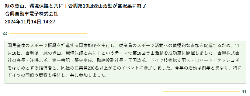 CDPディスクロージャー… 2023年10月27日、合興自動車電子株式会社が2024年のCDP